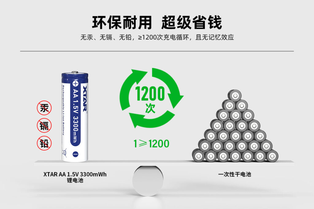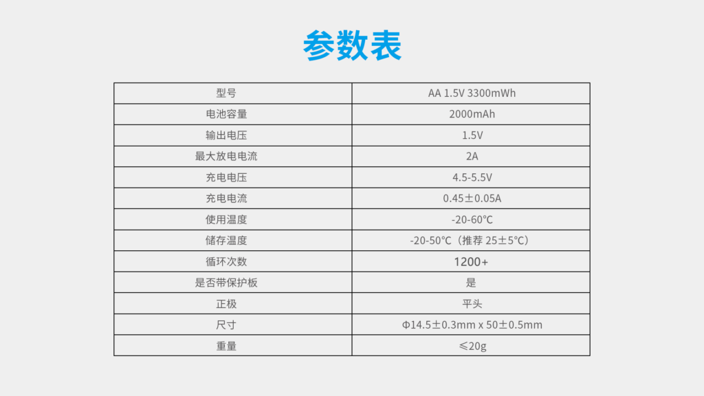超强兼容,从此告别一次性电池!• 1.5V 2A恒压大电流输出• 2.3小时智能快充• ≥1200次循环充电• 多重安全保障