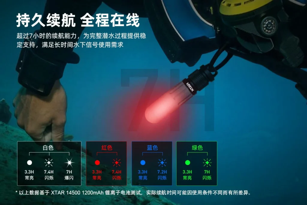 ·续航超过7小时,适合较长时间潜水使用