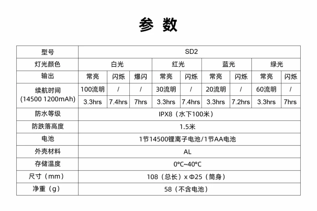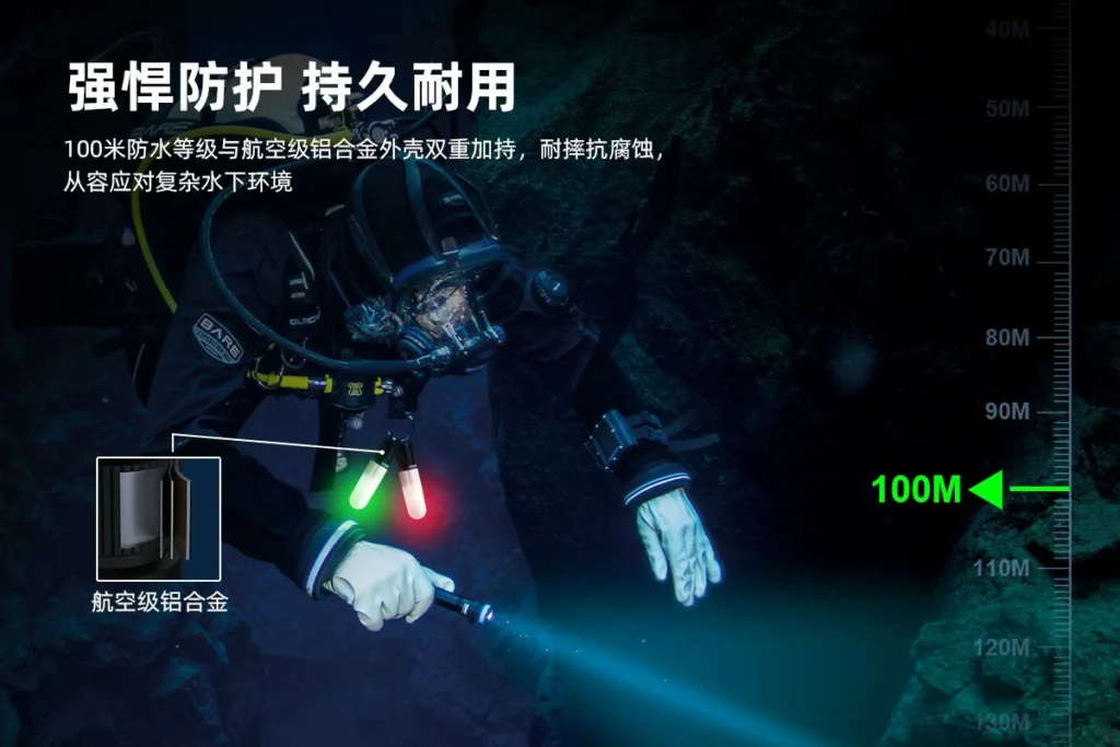 ·100米防水,铝合金外壳坚固耐用,抗摔抗腐蚀